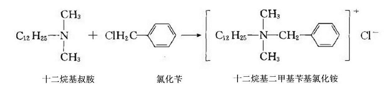 (1)反(fan)應原理及反應方(fang)程式:采用十二烷(wán)基叔胺與氯化苄(biàn)反應合成十二烷(wán)基二甲基苄基氯(lǜ)化铵,反應方程式(shì)如下。