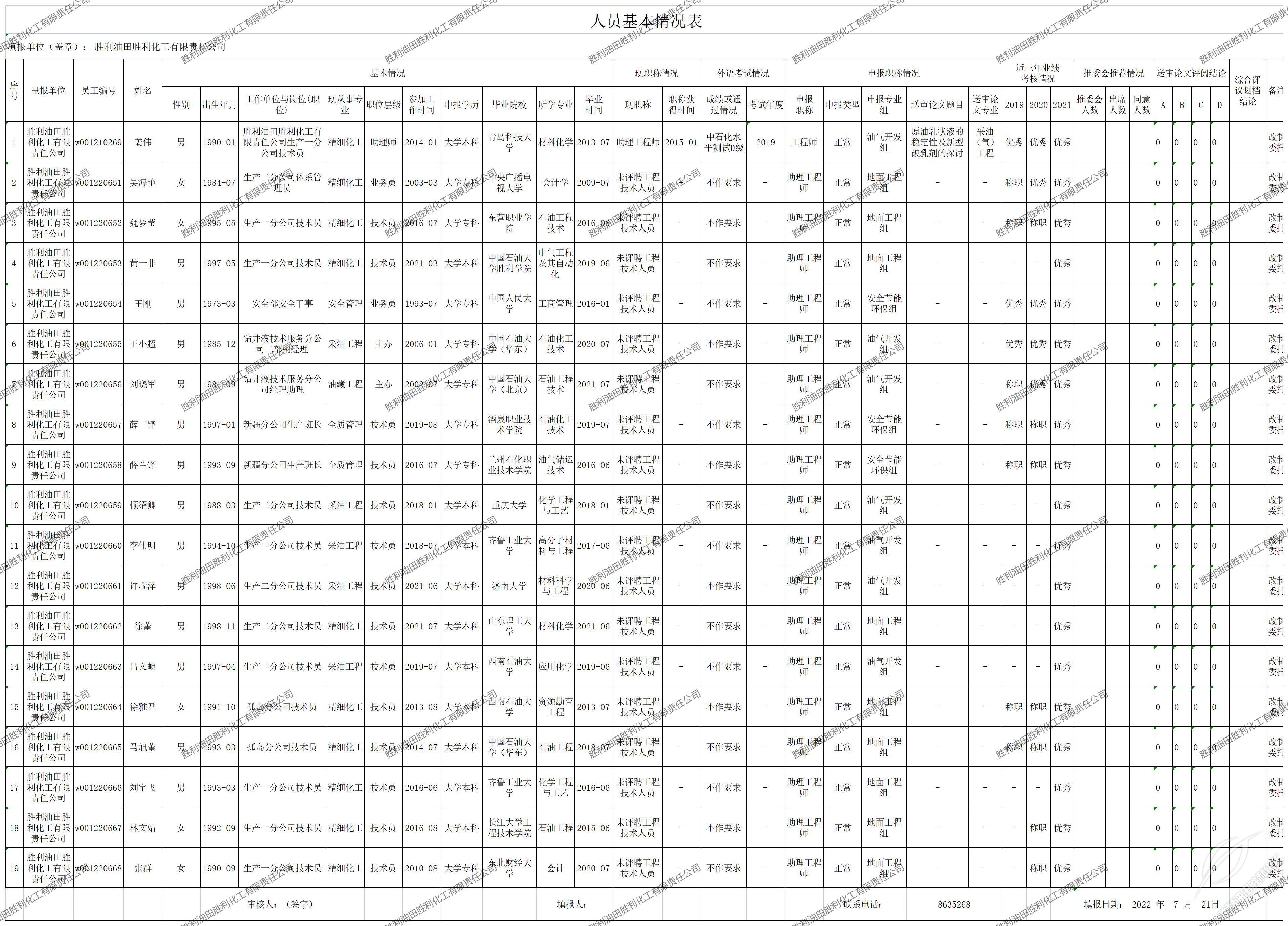 勝利(li)油田淄博荣亨服装制造有限责任公司(H5网站)有限(xiàn)責任**2022年中(zhōng)石化參加(jia)職稱評審(shěn)人員基本(ben)情況公示(shi)